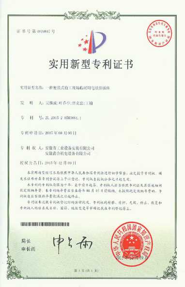 近日,從國家知識(shí)產(chǎn)權(quán)局傳來喜訊,公司申報(bào)的“一種便攜式施工現(xiàn)場臨時(shí)用電聯(lián)排插座”實(shí)用新型專利獲批,并頒發(fā)了國家實(shí)用新型專利證書。