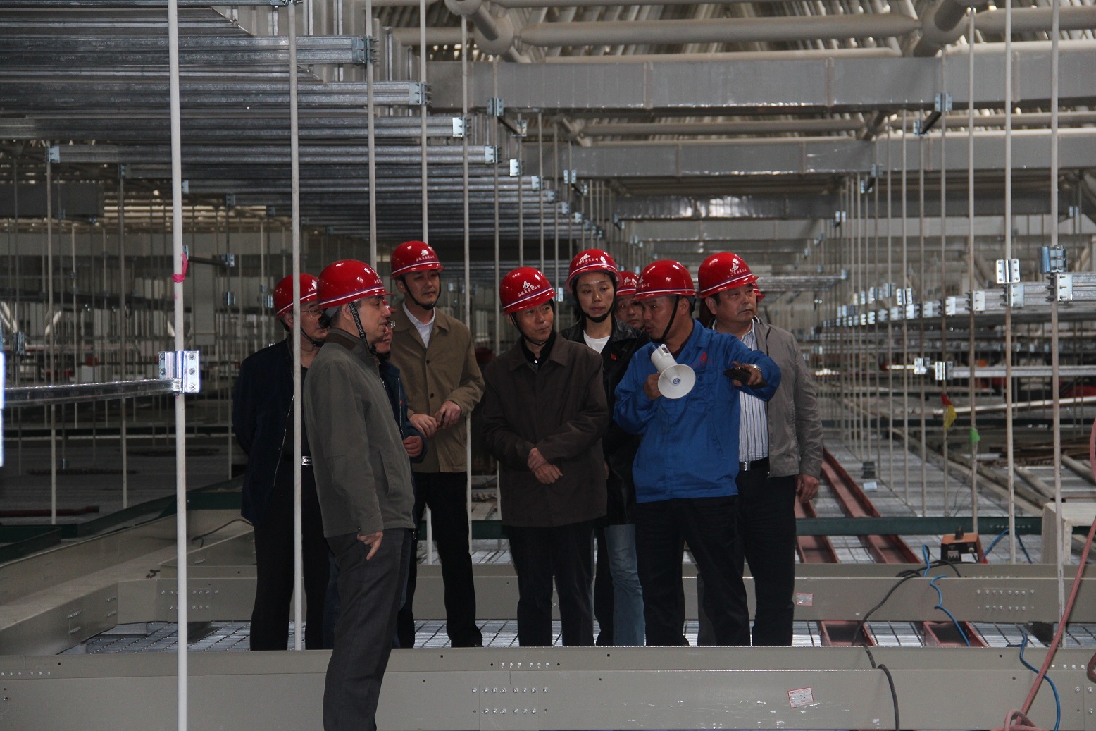 接著,胡六中書(shū)記對(duì)徐曉光一行犧牲中午休息時(shí)間來(lái)到現(xiàn)場(chǎng)驗(yàn)收“工人先鋒號(hào)”工程表示感謝,這種忘我的工作精神值得我們學(xué)習(xí)。另外,他表示要進(jìn)一步注重新技術(shù)、新材料的應(yīng)用,提升管理水平,加強(qiáng)人文關(guān)懷,增強(qiáng)職工歸屬感。把蚌埠卷煙廠項(xiàng)目真正建設(shè)成為安徽安裝乃至集團(tuán)公司的示范標(biāo)桿工程。