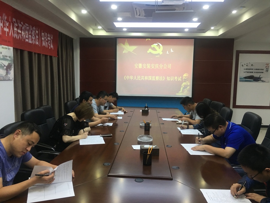 5月28日上午,安慶分公司黨支部集中組織全體黨員領(lǐng)導(dǎo)干部開(kāi)展《中華人民共和國(guó)監(jiān)察法》知識(shí)考試。本次考試題分為選擇題和簡(jiǎn)答題兩個(gè)部分,總分共計(jì)100分。通過(guò)答題做卷,使全體參考人員對(duì)《監(jiān)察法》的學(xué)習(xí)與理解得到進(jìn)一步的提高。