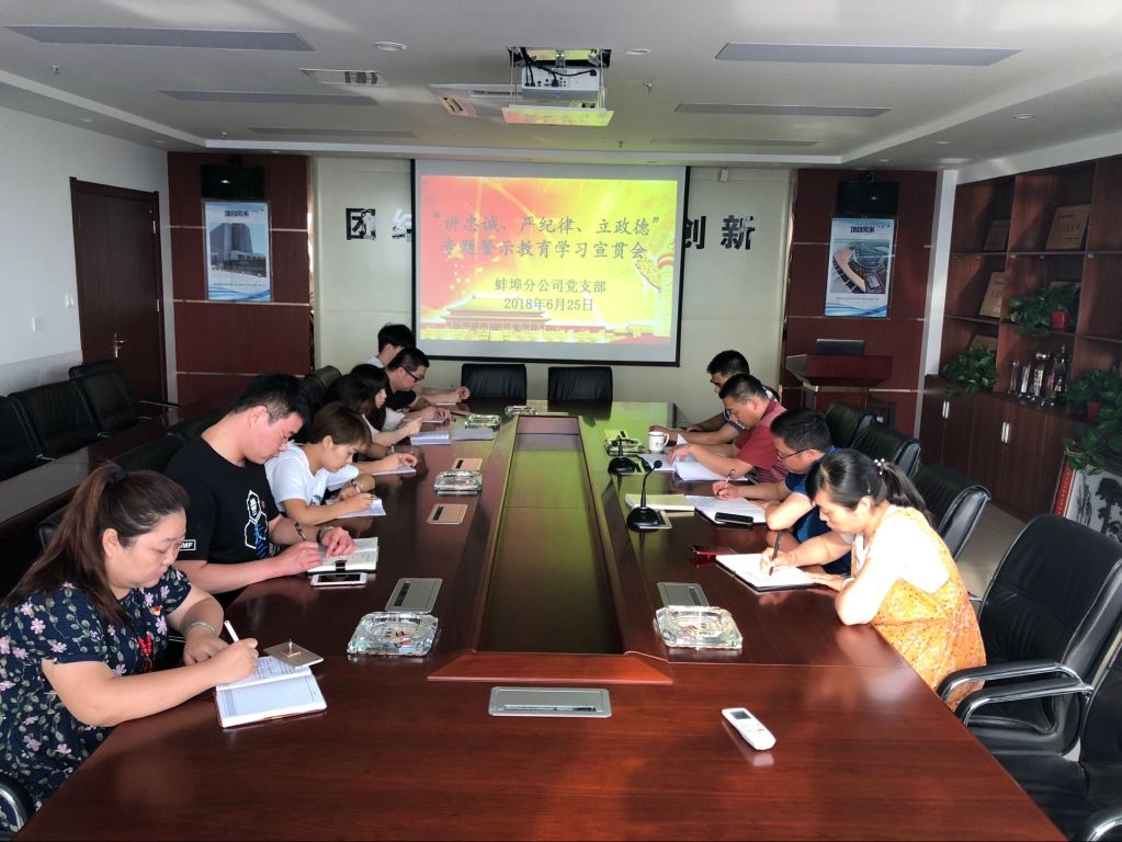 6月26日下午,蚌埠分公司黨支部召開了“講忠誠、嚴紀律、立政德”專題警示教育學習宣貫會,分公司黨員及機關員工參加會議。