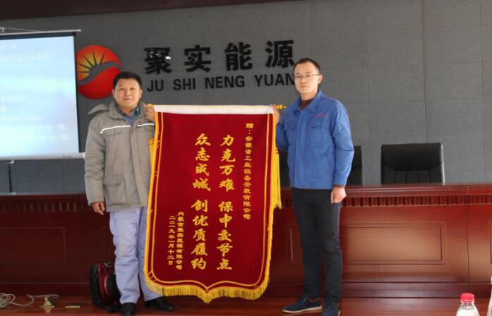 2019年1月14日,安徽安裝承建的內(nèi)蒙古聚實能源有限公司焦化升級改造生產(chǎn)清潔化學品項目,克服工期緊、任務(wù)重、施工難度大等諸多困難,安全、高效、優(yōu)質(zhì)的圓滿完成了工程建設(shè)任務(wù)。業(yè)主內(nèi)蒙古聚實能源公司總經(jīng)理張春軍向公司贈送內(nèi)容為“力克萬難 保中交節(jié)點;眾志成城 創(chuàng)優(yōu)質(zhì)履約”的錦旗。