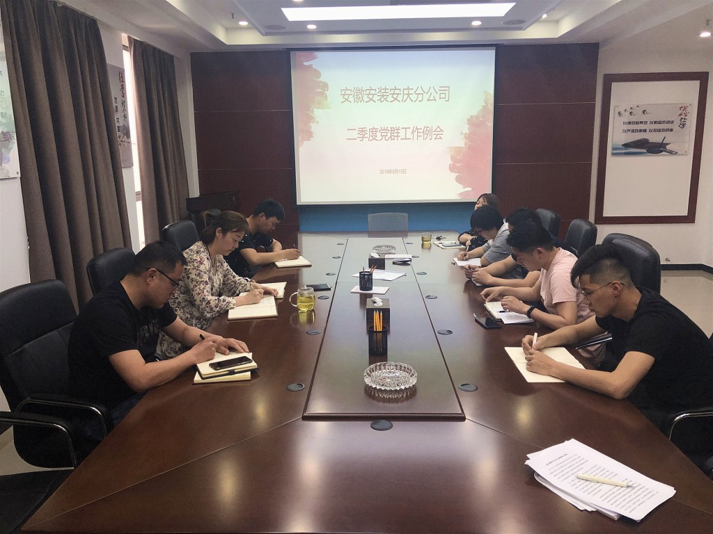 5月13日下午,安慶分公司召開第二季度黨群工作例會,分公司黨群工作領(lǐng)導(dǎo)、部門負責(zé)人及相關(guān)工作人員參加了會議,會議由綜合辦主任董玉娟主持。
