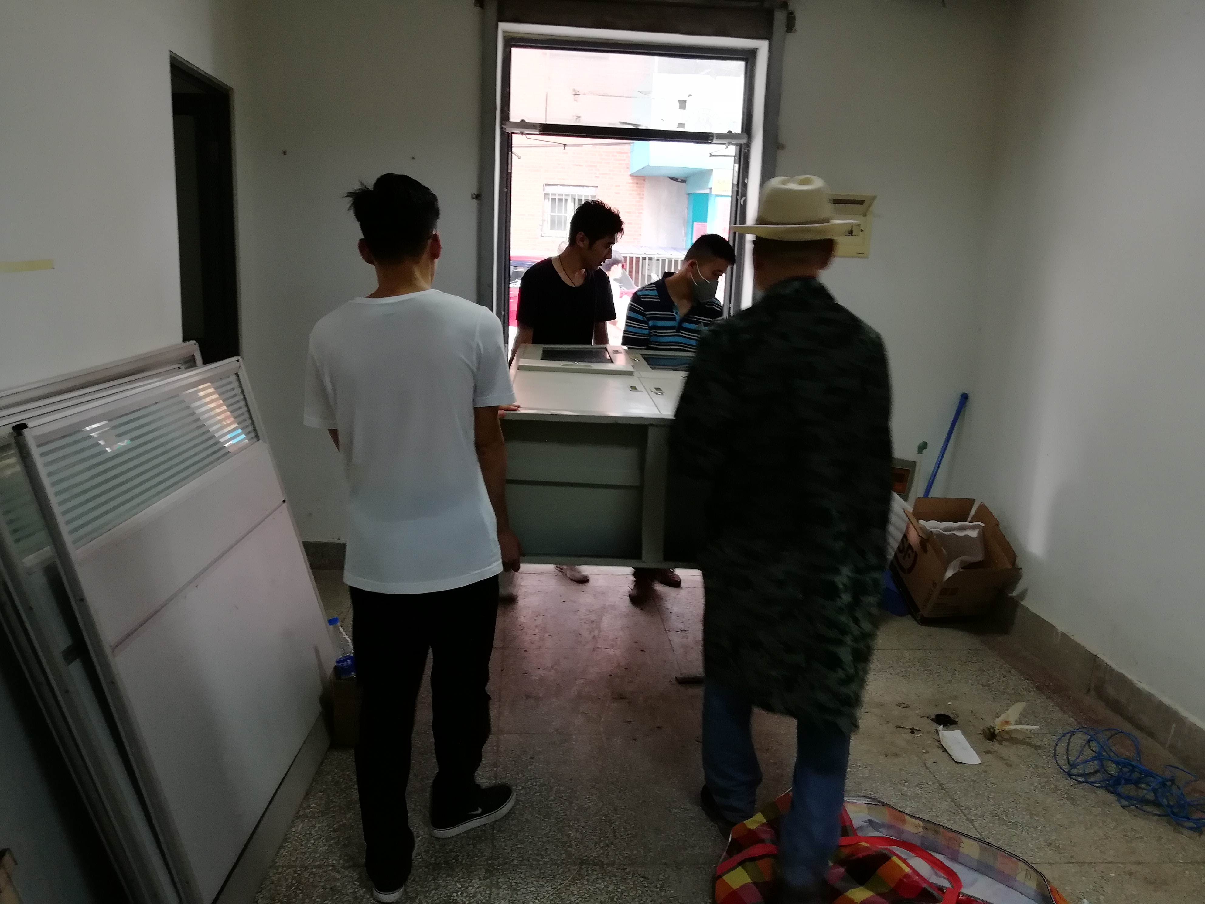 火熱的場面瞬間拉開了,不到10分鐘,大家的衣服都被汗水浸透了。此時室外實時溫度達到38度,但烈日炎炎也抵擋不住他們的干勁。有的負責將倉庫里疊加很高的設(shè)備、物資卸下,有的負責將卸落的設(shè)備、物資運至搬運待放點,還有的將待放點設(shè)備、物資搬遷至1樓大倉庫存放。大家一趟接著一趟、一件接著一件、所有人配合默契、分工明確,歷時4個小時,將老干部樓里全部的設(shè)備物資全部轉(zhuǎn)運到大倉庫,圓滿完成此次任務(wù)。