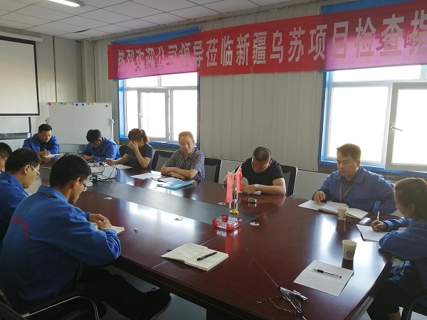 8月11日上午,安徽安裝公司黨委書記、董事長胡六中赴新疆新疆烏蘇中水回用項(xiàng)目檢查指導(dǎo)工作,并為項(xiàng)目部員工上黨課。副總經(jīng)理王軍陪同調(diào)研。