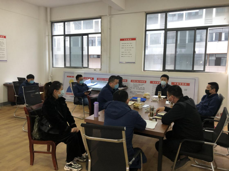趙永峰強調(diào),復(fù)工就是搶工,工期就是效益。針對項目工期緊、任務(wù)重,項目部要重點做好以下工作:一要持續(xù)抓好疫情防控各項舉措落地落實,確保疫情防控萬無一失;二要嚴格按照“一責(zé)兩案”要求,壓緊壓實責(zé)任,結(jié)合實際精心制定復(fù)工復(fù)產(chǎn)方案預(yù)案;三要加強項目管控力度,聚焦工期材料、質(zhì)量全等關(guān)鍵因素,搶抓工期進度,樹立品牌形象,創(chuàng)造經(jīng)濟效益;四要加強團隊建設(shè),項目部必須凝心聚力、發(fā)揮優(yōu)勢,立足企業(yè)積極向好的發(fā)展前景、方向與定位,積極打造一支“拿得出、打得贏”的項目團隊。