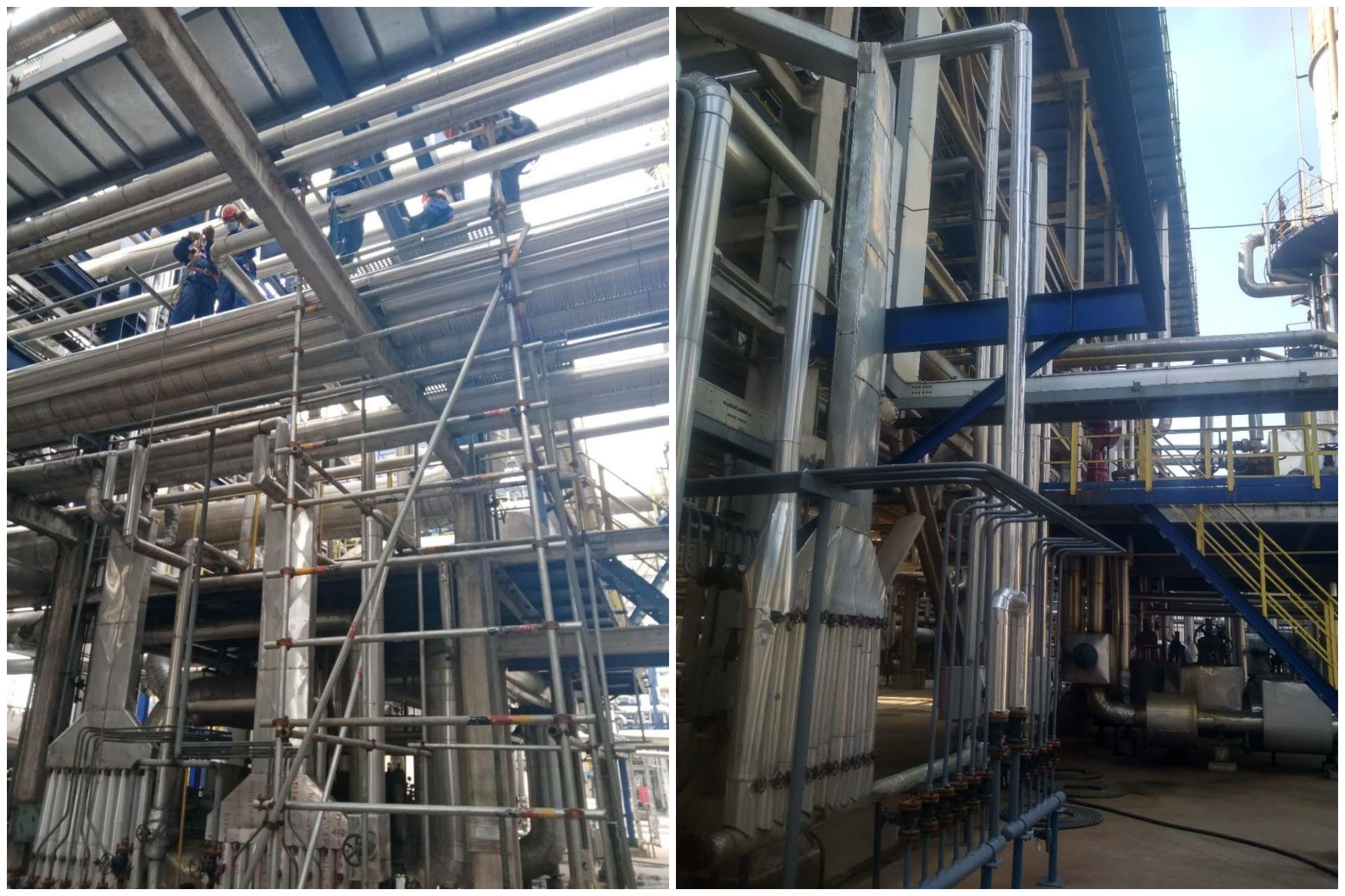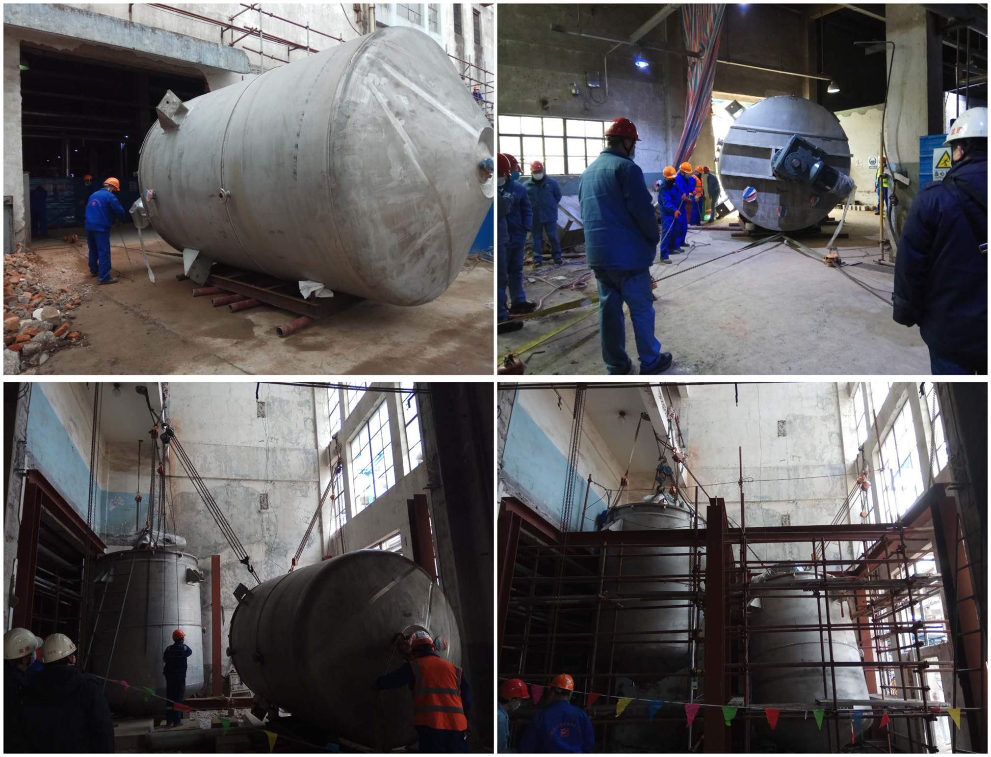 “腈綸阻燃纖維生產(chǎn)技術(shù)改造項(xiàng)目”的建成能夠使纖維產(chǎn)品起到防火阻燃的作用,創(chuàng)造更大經(jīng)濟(jì)效益,該項(xiàng)目屬于安慶石化重點(diǎn)項(xiàng)目。項(xiàng)目在施工過程中,由于安裝場地位于室內(nèi),運(yùn)輸和起重機(jī)械無法使用,導(dǎo)致2臺12噸、2臺8噸的配料罐無法簡便運(yùn)輸和吊裝進(jìn)入室內(nèi)安裝,給施工人員造成極大的困擾。但方法總比困難多,經(jīng)項(xiàng)目部拿出具體施工方案與業(yè)主、監(jiān)理研究決定,利用最原始的滾杠搬運(yùn)辦法,再以原有房梁為吊點(diǎn),采用2個20噸手動葫蘆吊裝、拉運(yùn)的方式順利將設(shè)備安裝就位。同時項(xiàng)目部合理安排人員加班加點(diǎn),為后期機(jī)泵安裝及工藝管道、鋼結(jié)構(gòu)、電氣儀表、防腐保溫等配套設(shè)施施工爭分奪秒,力爭3月31日完成共混單元所有施工,為業(yè)主平穩(wěn)生產(chǎn)產(chǎn)品,創(chuàng)造效益打下堅(jiān)實(shí)基礎(chǔ),也為安徽安裝的發(fā)展打下良好的口碑。