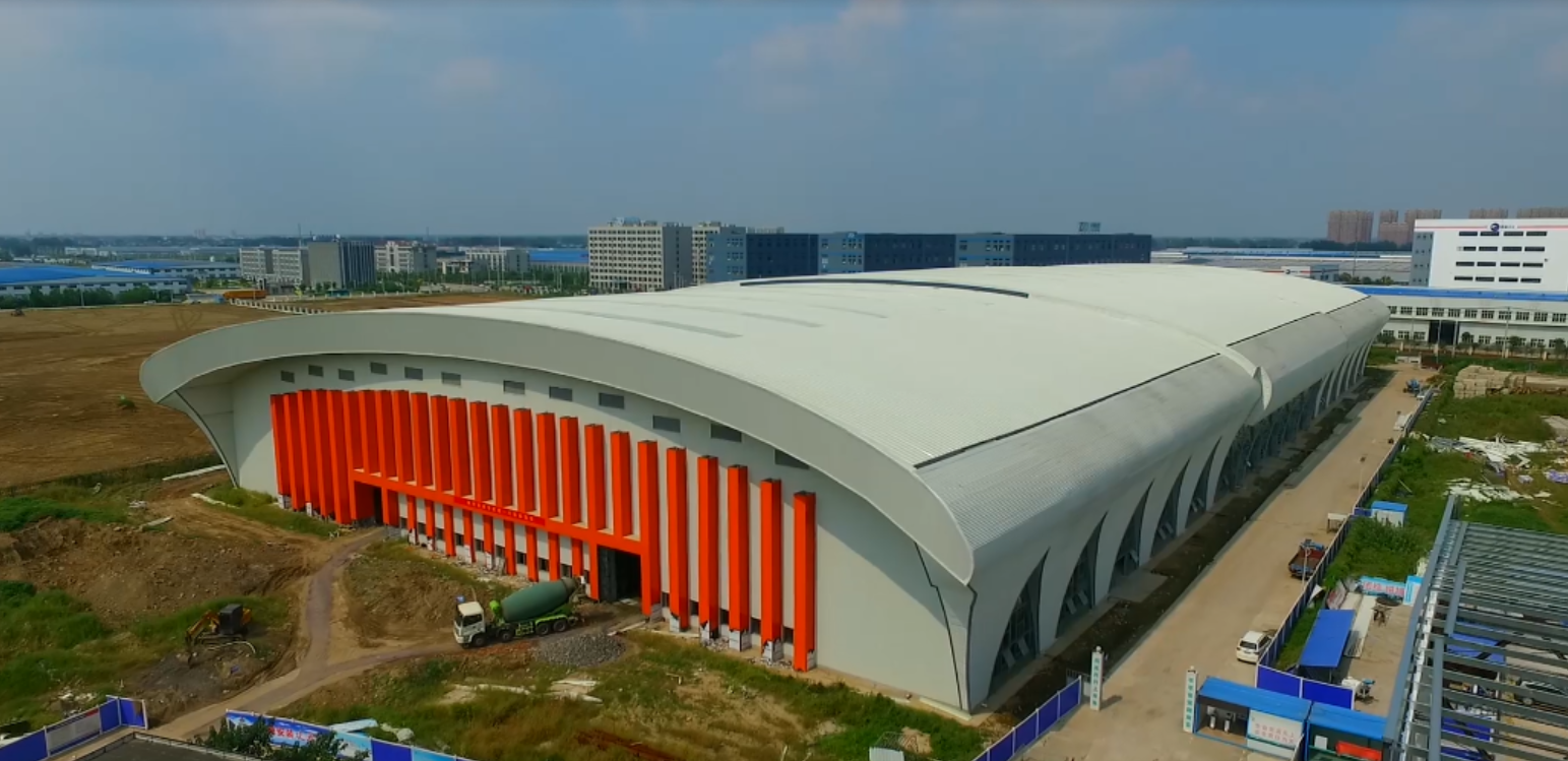 淮河試驗研究中心(水工河工模型試驗廳)一期工程總建筑面積約20000㎡,結(jié)構(gòu)形式為排架柱(圓鋼管)+三肢管桁架結(jié)構(gòu),構(gòu)件高度24米,跨度100米,抗震設(shè)防烈度為7度,為目前安徽省建設(shè)第二大跨度的鋼結(jié)構(gòu)工程。在項目施工過程中,安徽安裝公司嚴(yán)格按照設(shè)計圖紙及施工規(guī)范要求認(rèn)真組織安排施工,以一流的管理、一流的技術(shù)、一流的服務(wù),在保證工程質(zhì)量和施工安全的前提下,攻克了桁架跨度大、吊裝作業(yè)難度大等施工難點(diǎn),確保了項目如期完工。項目主體結(jié)構(gòu)安全可靠,總體效果達(dá)到同類工程先進(jìn)水平,成為讓社會滿意的精品工程。