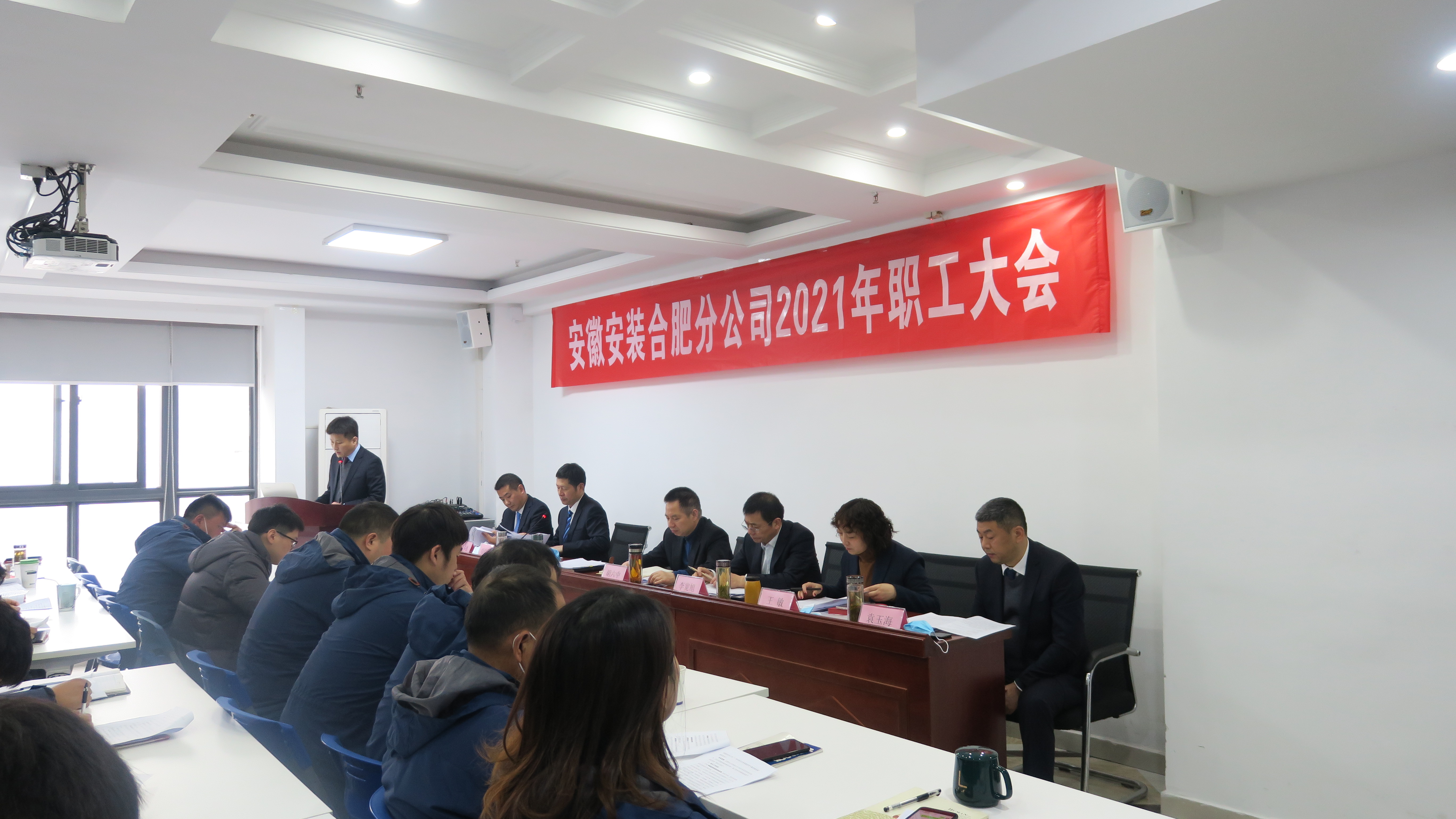 3月5日上午,安徽安裝合肥分公司在公司十五樓召開2021年職工大會。公司黨委書記、董事長胡六中,紀(jì)委書記、工會主席李寬旭出席大會,人力資源部及黨委辦公室負(fù)責(zé)同志、分公司班子成員及機關(guān)、各項目部員工參加會議。會議由分公司黨支部書記胡迎東主持。