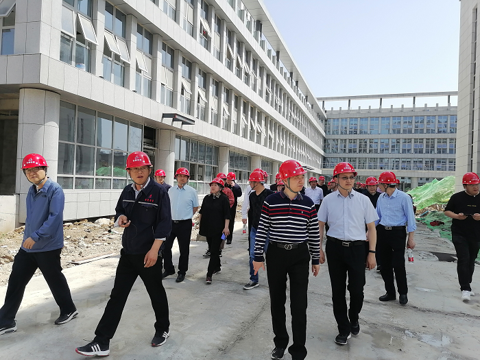 與會人員首先現(xiàn)場觀摩了阜陽市潁東中醫(yī)院項目,在項目經理徐明東的講解和帶領下,大家邊走邊看邊交流,詳細了解了項目實施情況、施工的重難點、進度管控措施。
