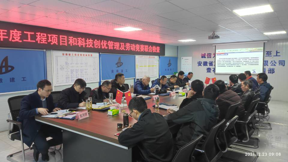 根據(jù)集團(tuán)公司關(guān)于開(kāi)展2021年工程項(xiàng)目管理、科技創(chuàng)優(yōu)管理和勞動(dòng)競(jìng)賽聯(lián)合檢查工作的安排,12月23日上午,集團(tuán)公司工程管理部(安全監(jiān)察局)督查員范毓慶率項(xiàng)目管理、科技創(chuàng)優(yōu)管理和勞動(dòng)競(jìng)賽專家組赴安徽安裝房建(裝飾)分公司壹石通項(xiàng)目開(kāi)展綜合檢查工作,公司副總經(jīng)理趙伯平,工程管理部、安全管理部、總工辦等部門負(fù)責(zé)同志參加本次檢查。
