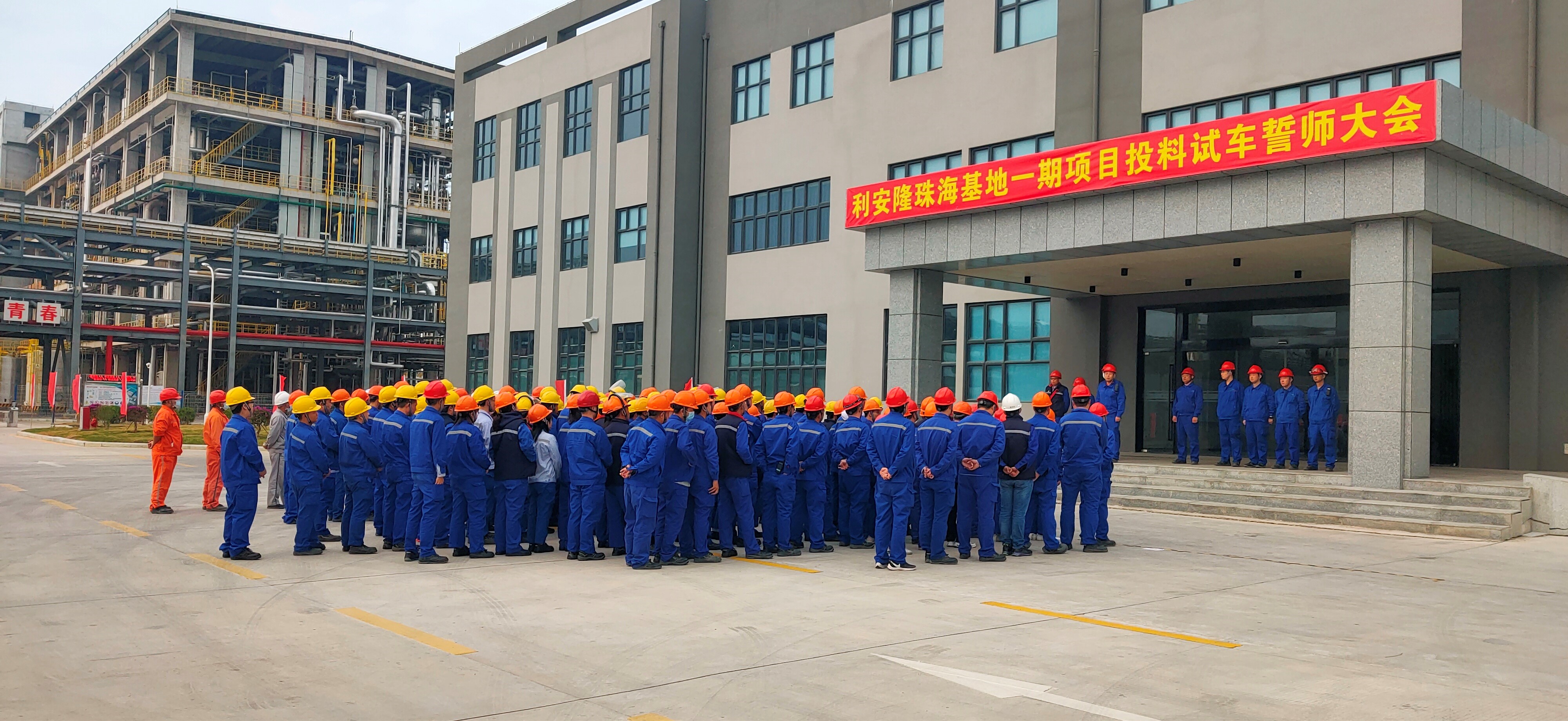 2022年1月10日公司參建的利安隆珠?;匾黄陧椖颗e行項目投料試車誓師大會。標志著項目將全面進入試生產(chǎn)階段。