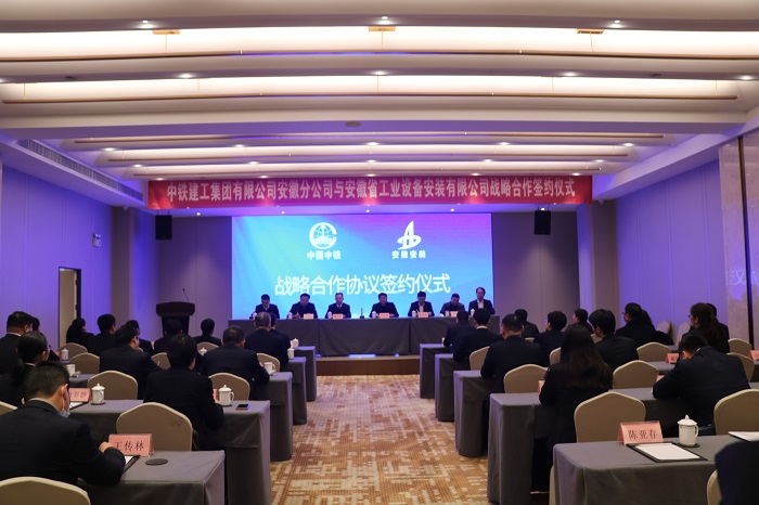 安徽安裝有關領導、相關部門負責人、在肥分公司黨政負責人以及中鐵建工集團有限公司安徽分公司有關領導、相關部門人員參加了此次簽約活動。