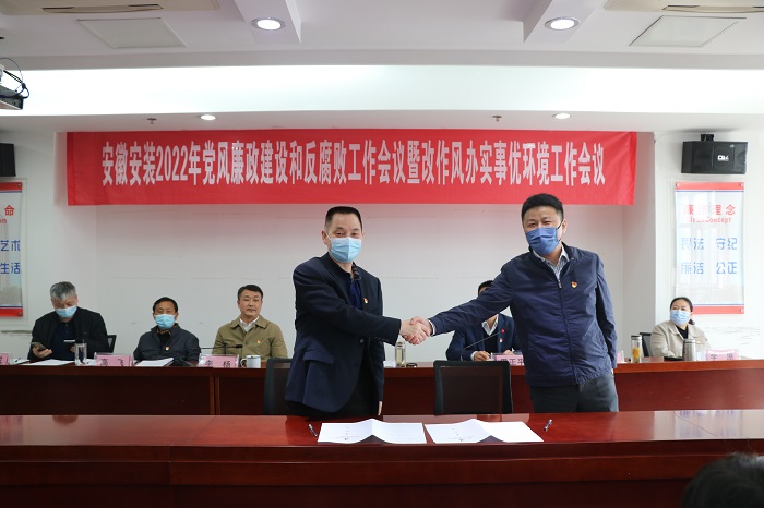 會上傳達(dá)學(xué)習(xí)了習(xí)近平總書記在十九屆中央紀(jì)委六次全會上的重要講話精神、省紀(jì)委十一屆二次全會精神、全省改進(jìn)工作作風(fēng)為民辦實事為企優(yōu)環(huán)境大會精神以及集團(tuán)黨風(fēng)廉政建設(shè)和反腐敗工作暨改作風(fēng)辦實事優(yōu)環(huán)境工作會議精神,宣讀了《安徽安裝公司改作風(fēng)、辦實事、優(yōu)環(huán)境工作實施意見》,公司黨委與所屬各黨支部簽訂了《黨風(fēng)廉政建設(shè)責(zé)任書》,公司中層管理人員簽訂了《廉潔自律承諾書》。會議以現(xiàn)場加視頻形式召開,公司機(jī)關(guān)各部門正副職、合肥地區(qū)分公司領(lǐng)導(dǎo)班子成員,外地分公司分別在主、分會場參加會議。