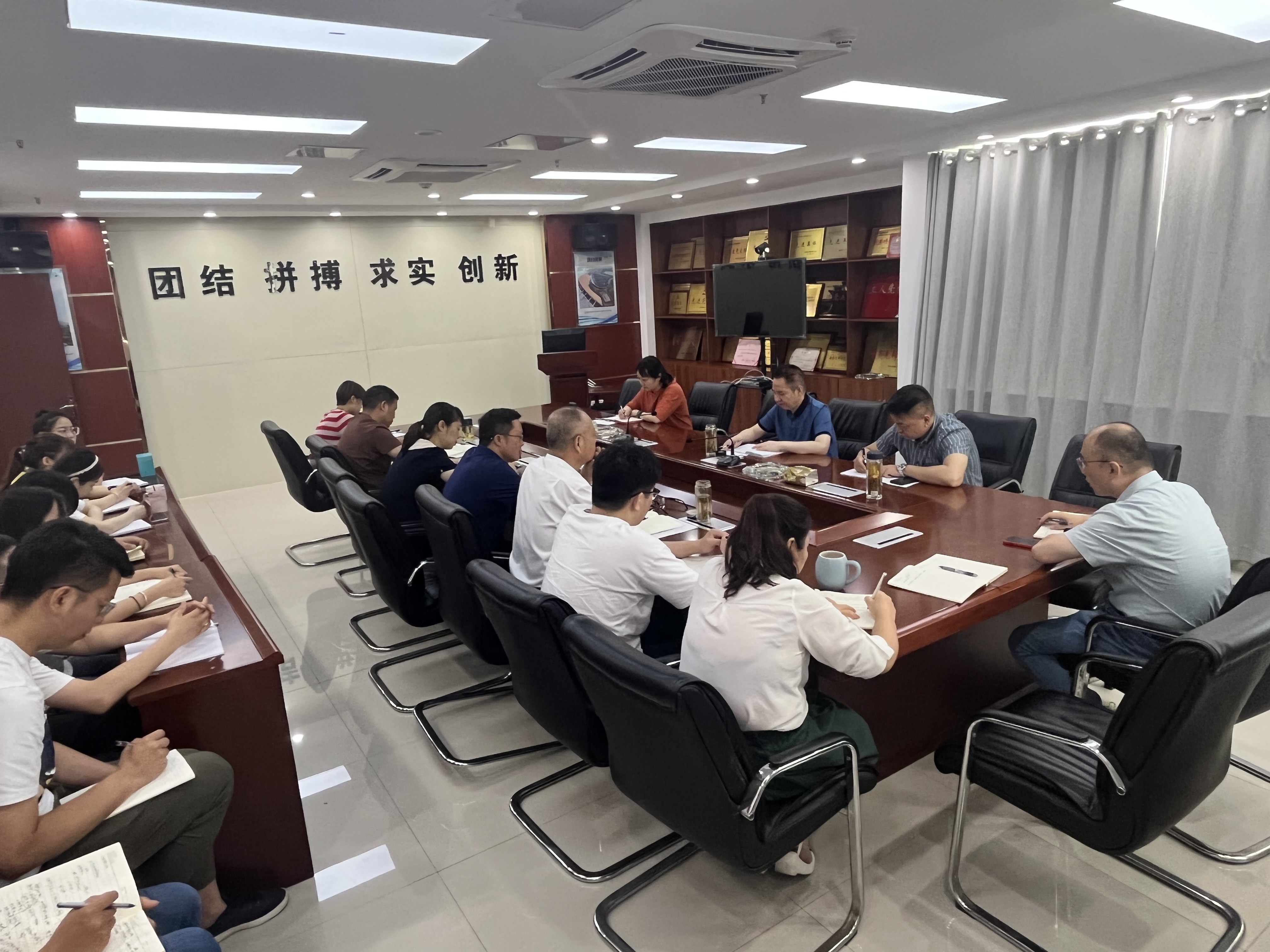 在蚌埠分公司機(jī)關(guān),胡六中主持召開“項(xiàng)目基礎(chǔ)管理年”活動(dòng)推進(jìn)情況調(diào)研會(huì),就下一步工作提出四點(diǎn)要求:一要強(qiáng)化經(jīng)營龍頭效應(yīng),堅(jiān)持效益優(yōu)先,進(jìn)一步解放思想,拓寬經(jīng)營思路,努力提升經(jīng)營高質(zhì)量發(fā)展水平;二要補(bǔ)短板,強(qiáng)基礎(chǔ),在工期履約、項(xiàng)目結(jié)算、決算和資金回籠上下功夫,提升分公司風(fēng)險(xiǎn)管控能力。三要堅(jiān)持黨建引領(lǐng),堅(jiān)持以人民為中心的發(fā)展思想,領(lǐng)導(dǎo)班子成員要把政治屬性放在首位,努力營造干事創(chuàng)業(yè)良好氛圍。四要進(jìn)一步統(tǒng)一思想,樹立信心,持續(xù)推進(jìn)分公司各項(xiàng)工作良性發(fā)展。