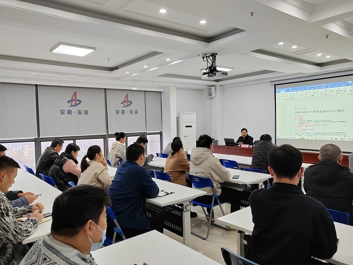 為進(jìn)一步提升公司員工對特種設(shè)備許可的理解,切實(shí)做好壓力管道(GC1)許可換證迎審材料準(zhǔn)備工作。11月22日上午,安徽安裝公司在15樓職工之家舉辦“特種設(shè)備生產(chǎn)和充裝單位許可規(guī)則TSG07-2019”專題學(xué)習(xí)培訓(xùn)。培訓(xùn)邀請了安徽省特種設(shè)備檢測院原總工、正高級(jí)工程師許久勝授課。公司機(jī)關(guān)、所屬各單位相關(guān)部門人員約50余人參加培訓(xùn)。培訓(xùn)以現(xiàn)場加視頻的形式召開。