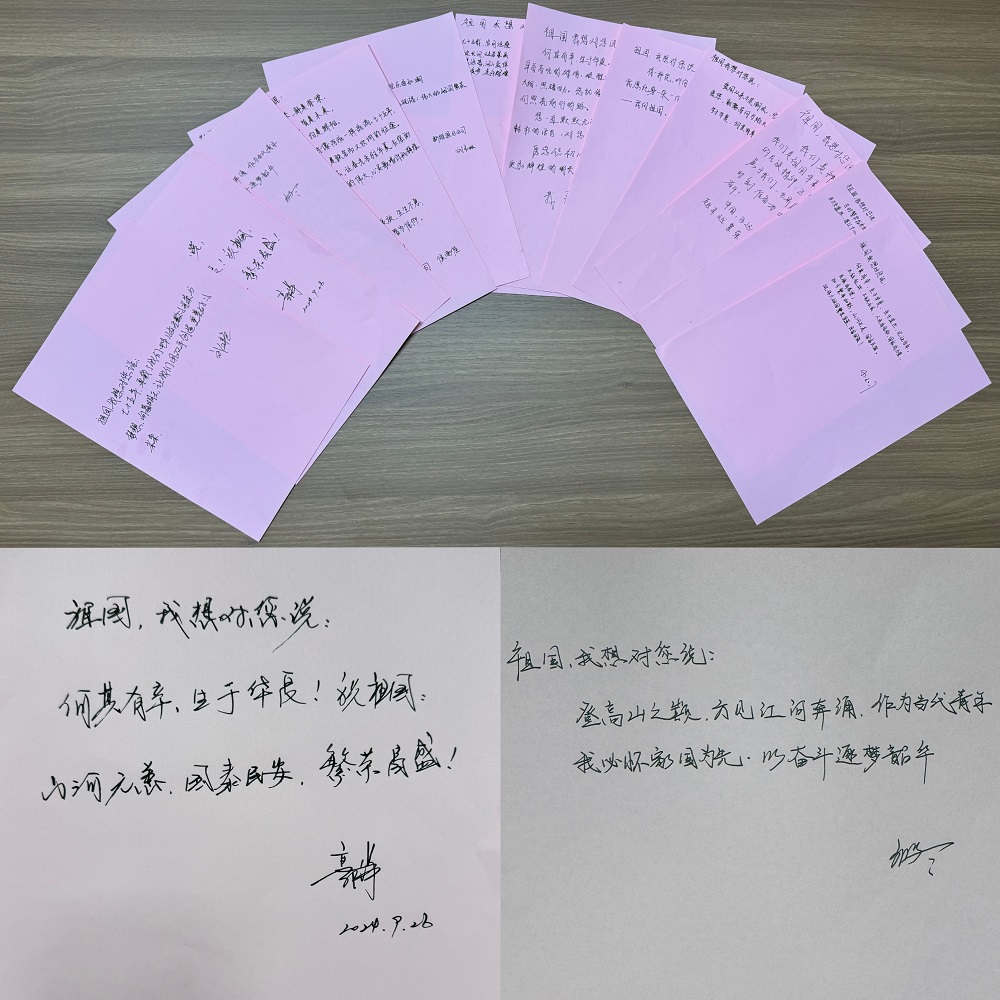 你看,這一句句真摯樸實的祝福,真情流露出我們對祖國的無比熱愛和深情告白:“七十五年,承載了我們中華兒女無數(shù)的光榮與夢想;向著明天,讓我們用雙手創(chuàng)造更美好的未來?!薄坝幸环N花,叫向日葵,永遠向著太陽生長;此刻,我愿化身一朵“向日葵”,追隨我心中的“太陽”——我的祖國,祝您欣欣向榮、蒸蒸日上!”“我們是祖國未來的接班人,時刻準備為中華民族的偉大騰飛而努力奮斗!”……